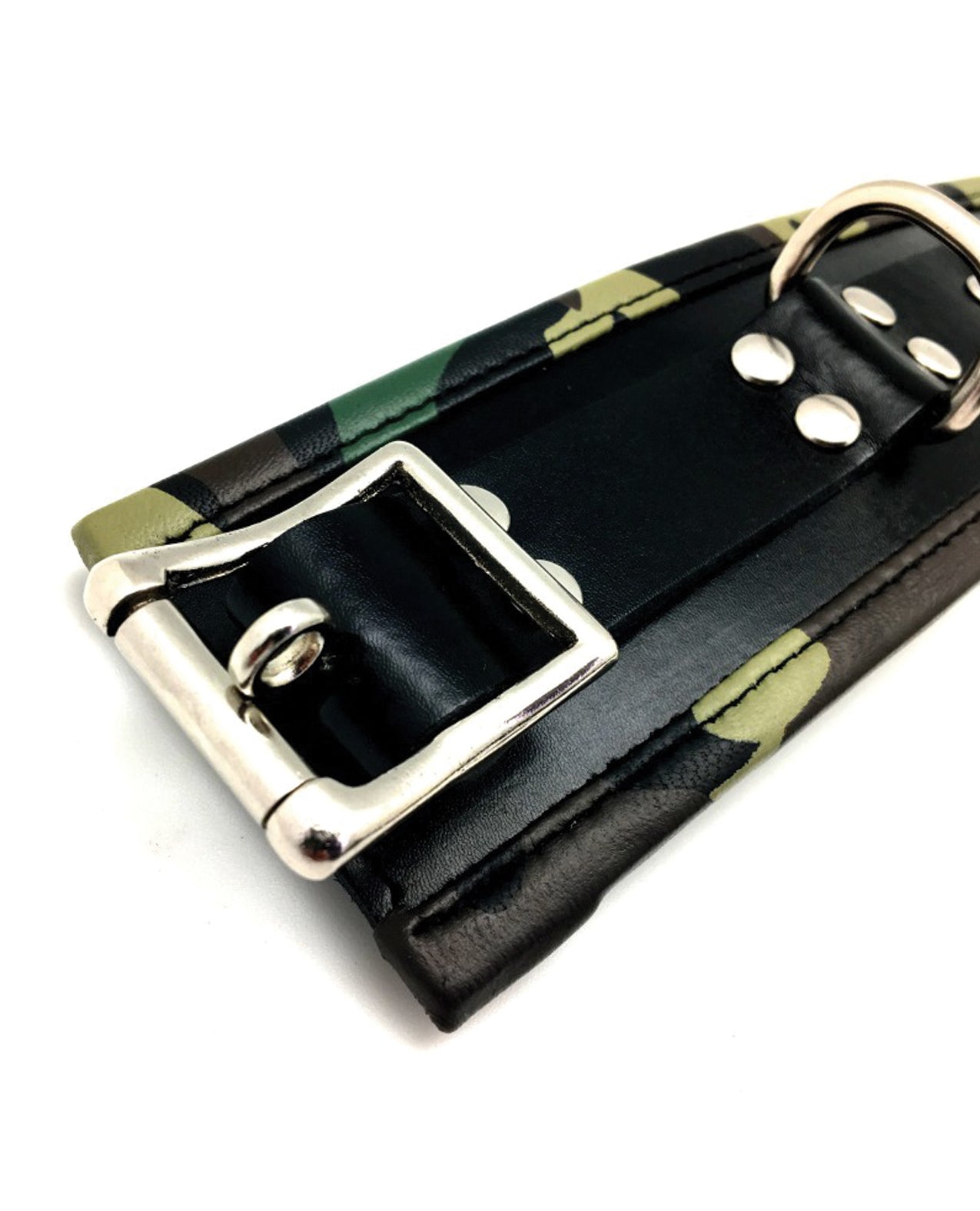 Sensual Sin Leather Padded Ankle Cuffs - Camo Piping