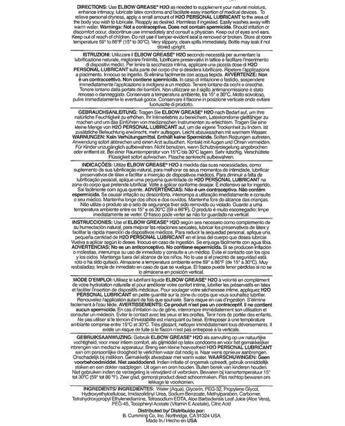 Experience the pleasure of effortless intimacy with Elbow Grease H2O Personal Lubricant. This luxurious formula enhances your sensual moments, providing a smooth and satisfying glide that elevates your experience to new heights.