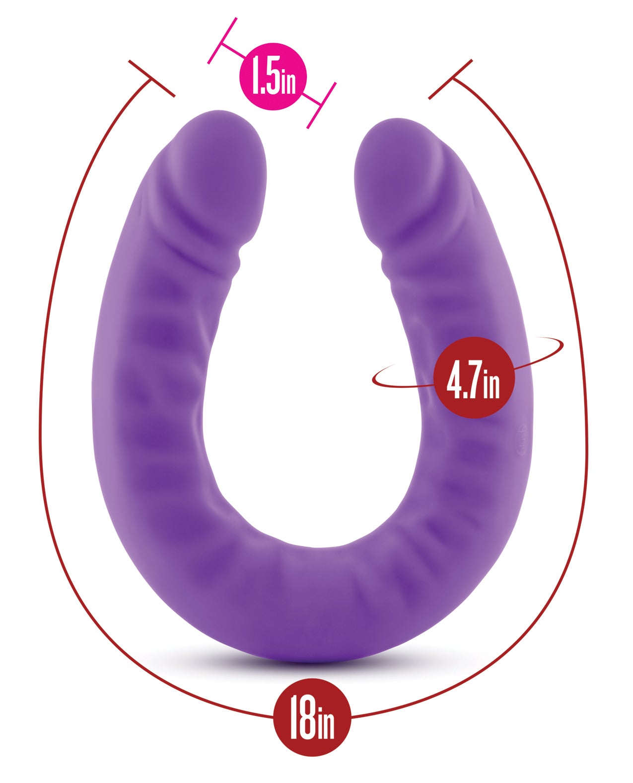 Experience ultimate pleasure and explore new depths of intimacy with the Blush Ruse 18" Slim Double Dong in Purple. This versatile U-shaped dildo offers a thrilling adventure, allowing you to enjoy double penetration or solo play with ease.