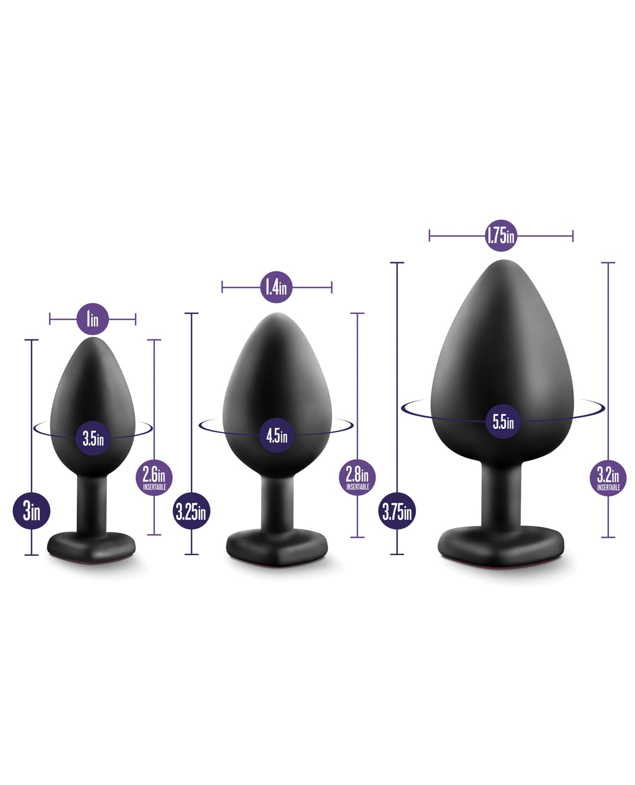 Elevate your anal training experience with the Blush Luxe Bling Plugs Training Kit in stunning black adorned with red gems. This exquisite set not only provides pleasure but also adds a touch of glamour to your intimate moments.