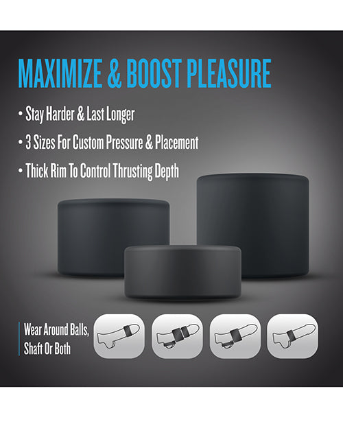 Unlock unparalleled pleasure with the Blush Performance Plus Accelerate - Black. This innovative 3-ring set is designed to maximize stamina and enhance sensations, ensuring that every moment of intimacy is unforgettable.