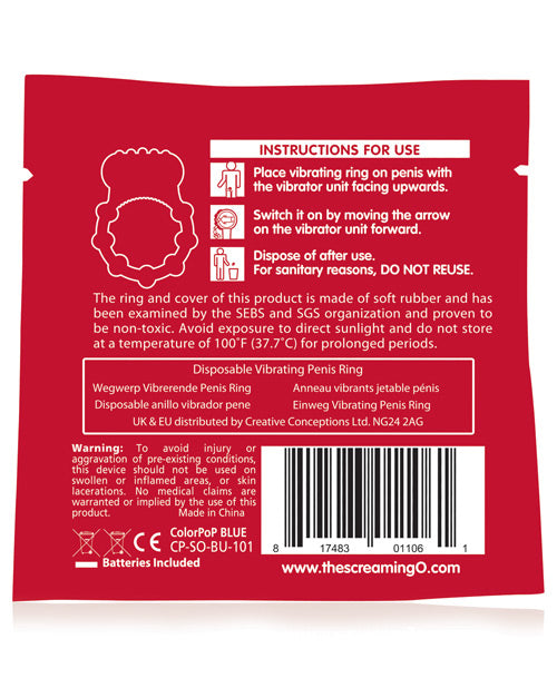 The Screaming O Vibrating Ring features strategically placed pleasure knobs for him and stimulating ticklers for her, delivering powerful vibrations that resonate throughout the entire ring. Its unique disposable design allows for effortless use, making it perfect for spontaneous adventures or cozy nights in. The vibrant blue color adds a fun touch while ensuring that couples can enjoy this exciting accessory anytime, anywhere.