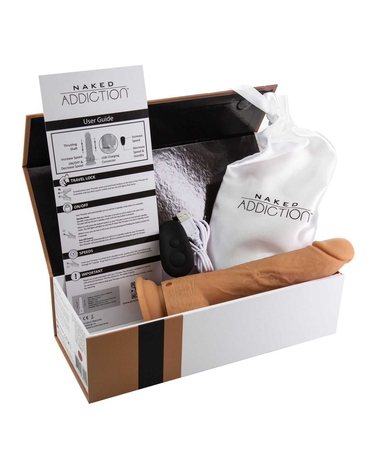 Experience pleasure like never before with the Naked Addiction 9" Thrusting Dong w/Remote in a luscious Caramel hue. Designed for those who crave both excitement and satisfaction, this innovative toy delivers powerful thrusting action at your command.