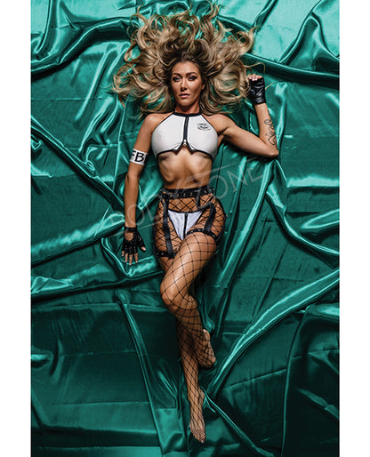 Crafted from a blend of 80% Poly and 20% Elastane, this set combines comfort with a flattering fit, making it perfect for sizes S/M (U.S. 2-8). The six-piece collection includes a daring top, a cheeky thong, a stylish belt garter, a pair of gloves, an arm band, and seductive fishnet stockings, ensuring you have everything you need for an enticing role-play scenario. The materials are designed for easy care, allowing you to hand wash and line dry without any hassle.