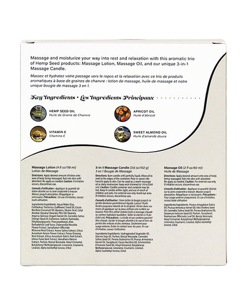 Indulge in the ultimate relaxation experience with the Earthly Body Hemp Seed Massage in a Box - Asst. Isle of You. This all-in-one set offers a luxurious escape, combining soothing massage oils, creamy lotions, and fragrant candles to elevate your self-care routine.