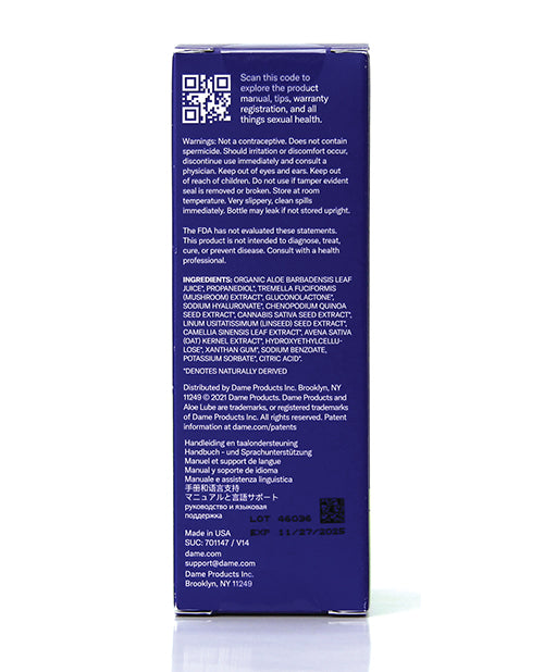 Discover the ultimate pleasure enhancer with Dame Alu - 4 oz, designed to elevate your intimate experiences while ensuring safety and comfort. This water-based lubricant, crafted from organic aloe vera, provides a smooth glide that enhances sensation without compromising your health.
