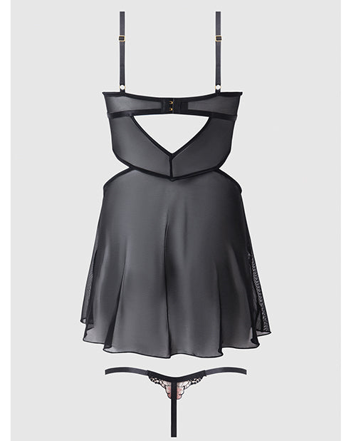 Nova Lace & Mesh Babydoll w/G-String 2 pc Set - Black LG