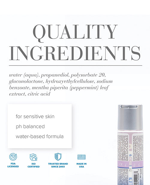 JO Cooling Agape is our carefully pH balanced, water-based lubricant that mimics the bodys natural moisture and has a light, natural feel. A more natural option for ingredient conscious users. pH balanced for the vaginal microbiome. Key Ingredients. Propanediol is derived from a corn fermentation process. A more natural alternative to propylene glycol, which is derived from a petrochemical. Mentha Piperita (Cooling) is a concentrated oil from peppermint and mint that not only provides a cooling sensation but also a slight plumping effect.Not compatible with polyurethane condoms. NOT compatible with polyurethane condoms