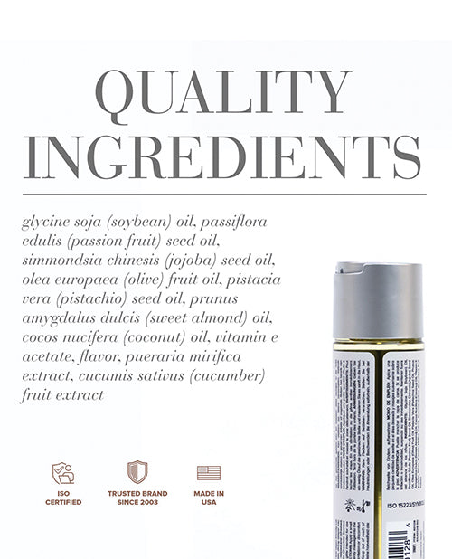 JO Aromatix Massage Oils are a unique blend of ingredients that can transform any intimate moment into a captivatingly sensual experience. Featuring a combination of skin-nourishing oils and alluring flavors, Aromatix engages the senses and enhances foreplay. Kissable, vegan-friendly formula. Formulated for external use only. Not tested for use with condoms. Contains nut oils and may cause an allergic reaction when applied topically for sensitive. Key ingredients. Jojoba Oil penetrates the skin easily and reduces water loss by forming a protective film non-comedogenic. Sweet Almond Oil contains a high quantity of oleic acid to help maintain soft, supple skin. Vitamin E Acetate is an antioxidant and moisturizing agent that can improve skins elasticity.