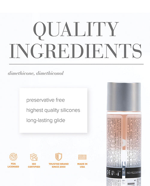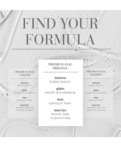 JO Premium Anal uses our luxurious, classic silicone-based formula. The buttery smooth texture and long-lasting glide make it perfect for extended sessions when you want to feel every movement. Its carefully balanced formula even dries to a sumptuous soft-touch finish that leaves your skin feeling soft and moisturized. Free from Glycerin, Parabens, Glycol, Cyclopentasiloxane or Cyclotetrasiloxane. Long-lasting and water resistant Only 2 ingredients Preservative-free. Key Ingredient - Dimethicone Also known as Silicone, is a long-lasting emollient moisturizer. Applies smoothly and is gentle on the skin Dimethicones natural silicone derivatives give it a unique silky feel, enabling it to form a permeable barrier that prevents moisture loss..