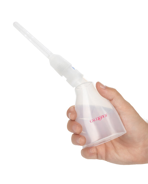 Keep your intimate moments fresh and worry-free with the One-Way Ultimate Douche. This easy to use cleaning system features a revolutionary one-way valve design that prevents backflow, ensuring a complete experience every time you cleanse. Designed for versatility and ease of use, the system includes 2 interchangeable nozzles with leak-free screw mounts, giving you flexible options to suit your comfort and needs. The entire unit disassembles quickly for thorough, hassle-free cleaning, making maintenance simple and convenient. Compact yet effective, the One-Way Ultimate Douche holds up to 5.5 fl. oz./162.75 mL of liquid, providing ample capacity for a complete cleanse. Whether youre prepping for intimate play or simply refreshing your pleasure, this trusted tool delivers reliable performance and ultimate peace of mind. One Year Warranty.