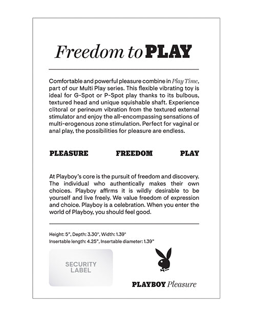Don't wait to elevate your pleasure experience. Embrace the excitement of the Playboy Pleasure Play time Multi Play Vibrator and discover endless possibilities for satisfaction today.