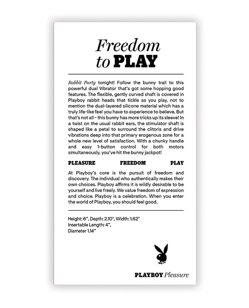 Don't wait to indulge in the ultimate pleasure. Click the link and bring home the Playboy Pleasure Rabbit Party today to unlock a world of excitement and satisfaction. Your next adventure in pleasure awaits.