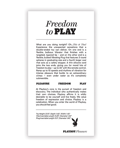 Dont miss out on the chance to ignite your intimate momentsorder the Playboy Pleasure This & That - Acai today and experience the freedom to play like never before. Embrace the unexpected and redefine your pleasure.