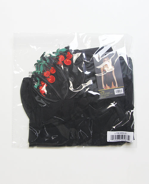Cherry Delight Embroidered Lace and Mesh Babydoll w/Balconette Cup & Thong 2 pc Set - Black LG