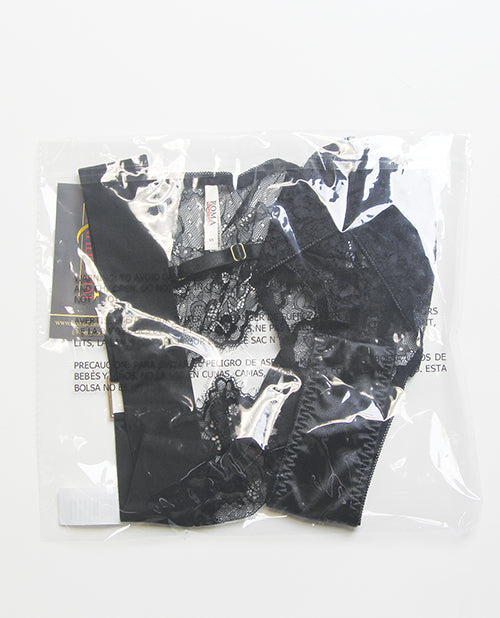 Fever Dream Chantilly Eyelash Lace and Stretch Satin Bralette w/Thong - Black LG