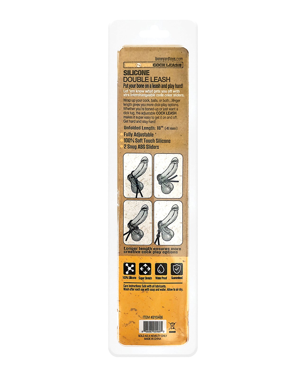 Crafted from 100% medical-grade silicone, the Boneyard Double Cock Leash combines comfort with durability. Its two color-coded ABS latchesavailable in black, blue, red, and yellowoffer endless adjustment possibilities, ensuring a perfect fit every time. Whether you want to wear it around your shaft, your balls, or both, the innovative bead design lets you easily tighten or loosen the ring without the hassle of switching to a different one.