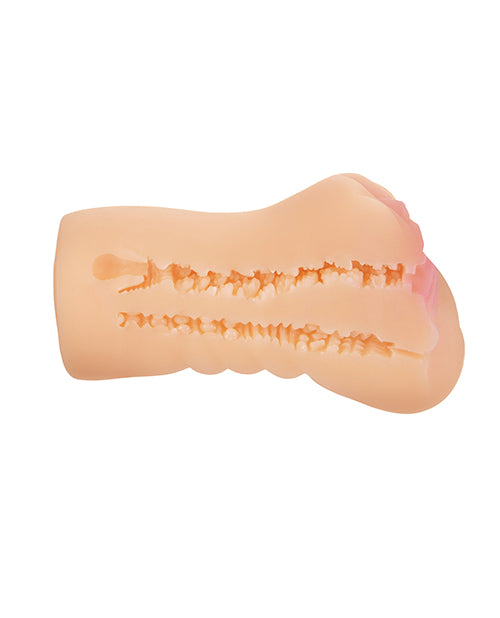 Crafted from ultra life-like Pure Skin material, this stroker offers a soft, tight, and stretchy embrace that mimics the feel of skin. Weighing over 1 lb. and featuring dual entry options, you can explore either front or back door action, each providing a unique and tantalizing experience. The textured chamber inside enhances every thrust, ensuring that pleasure is maximized with each movement.