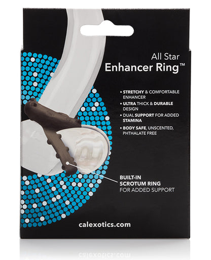 Experience heightened pleasure and peak performance with the All Star Enhancer Ring - Smoke. This expertly crafted ring offers unmatched comfort and support, ensuring that every intimate moment is filled with ecstasy.