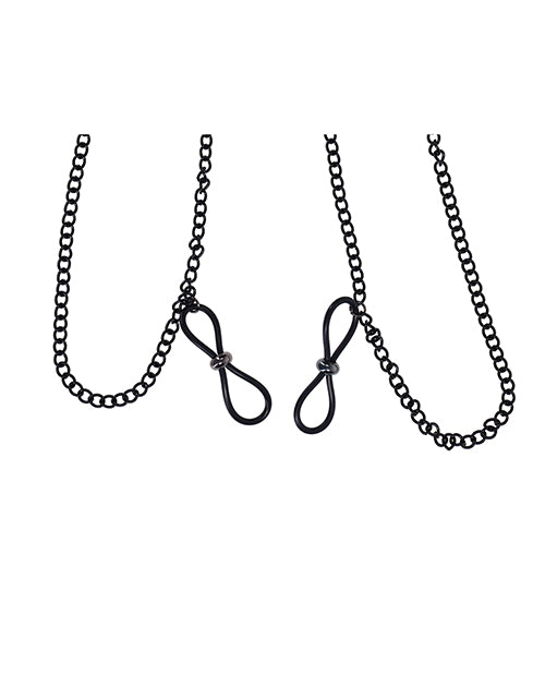 Dripping with dark elegance and sensual allure, the Lace Collar with Nipple Ties is designed for those who crave a touch of the unexpected. This ornate lace collar wraps comfortably around the neck, featuring an adjustable bra-strap-style back for the perfect fit. Glistening black gem stones dangle delicately from the collar, drawing attention to the neckline while adding a touch of mystery. The black double-chain draping connects effortlessly to adjustable nipple ties, offering a subtle yet seductive thrill. Designed to be stylish, sexy and discreet, this piece is perfect for those looking to turn up the heat - whether in public or behind closed doors.