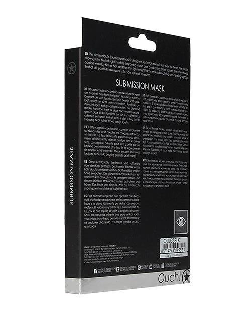 Crafted from lightweight fabric, the Submission Mask stretches effortlessly over the head and secures with a convenient zipper at the back. Its design allows a subtle hint of light to filter through, impairing vision while enhancing other senses. Suitable for any gender, this versatile hood ensures easy breathing and hearing, all while keeping your subjects mouth accessible for added excitement.