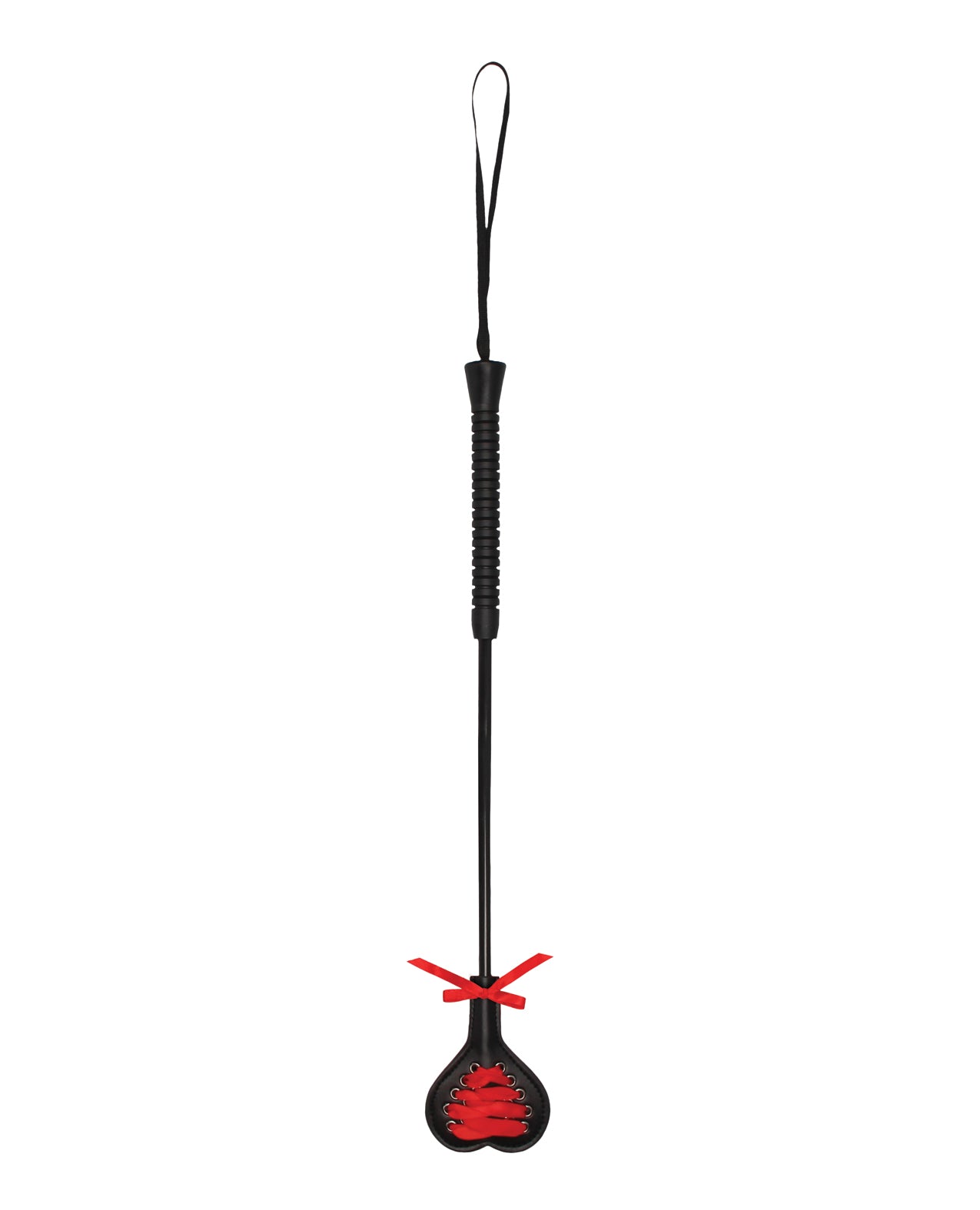 Crafted with a long handle and adorned with delicate black lace, this heart-shaped crop is both visually stunning and functional. Its sturdy construction ensures durability, while the gentle sting provides just the right amount of intensity for a thrilling encounter. Whether you're a seasoned enthusiast or new to the world of playful discipline, this crop offers versatility to suit your desires.