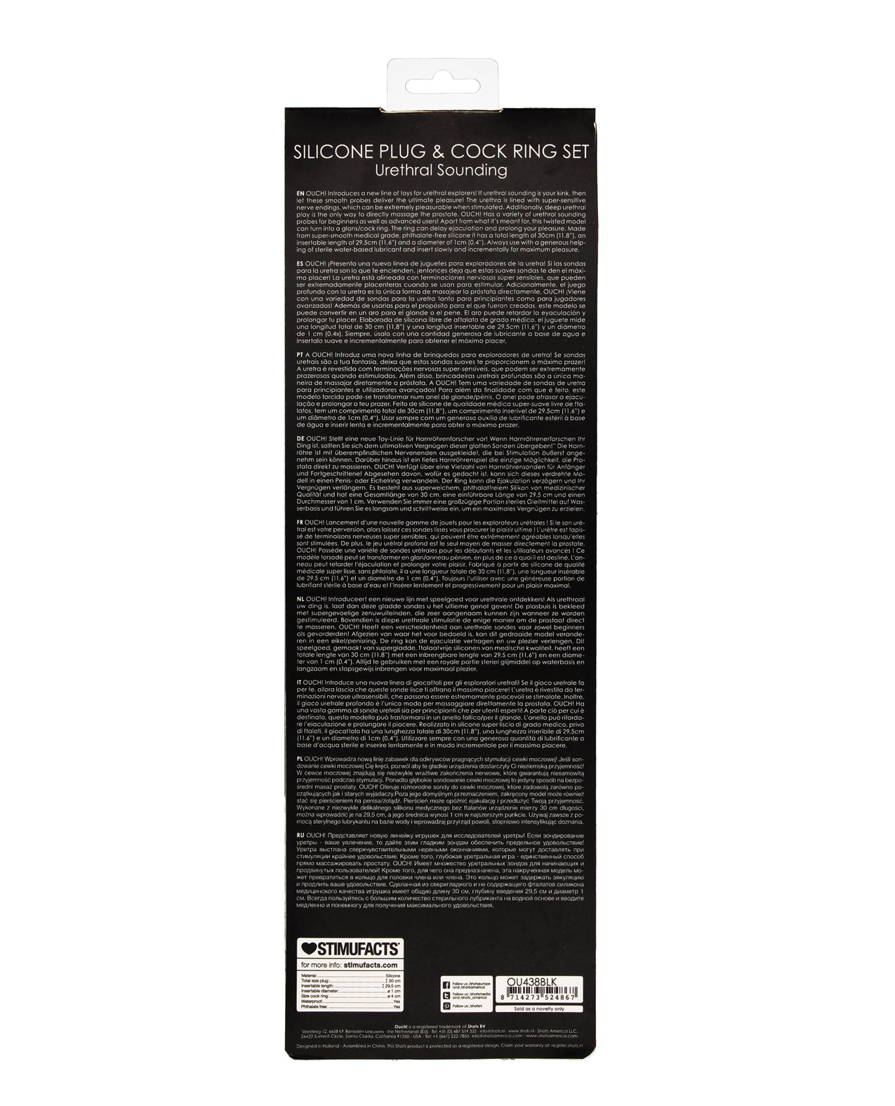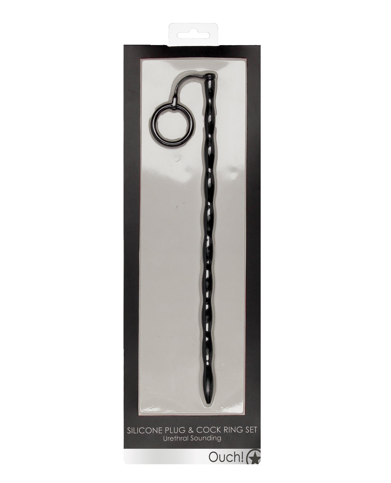 Shots Ouch Urethral Sounding Silicone Plug & Cock Ring Set - Black