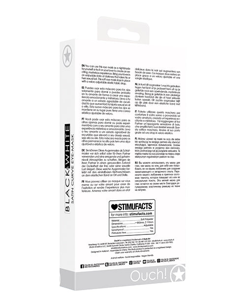 Don't miss the chance to transform your evenings into unforgettable adventures. Add the Shots Ouch Black & White Satin Curvy Eye Mask to your collection and unleash the thrill of exploration today.