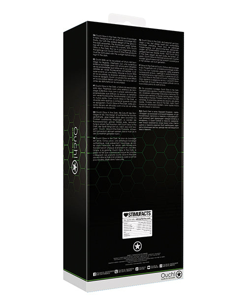The Ouch! Glow in the Dark Bondage Kit includes all the essentials to elevate your adventures. Inside, youll find comfortable wrist cuffs, a breathable ball gag, playful dice to inspire new experiences, a paddle for added excitement, and an eye mask to heighten anticipation. The fluorescent green detailing shines brightly in the dark, ensuring that your explorations continue long after the lights go out.