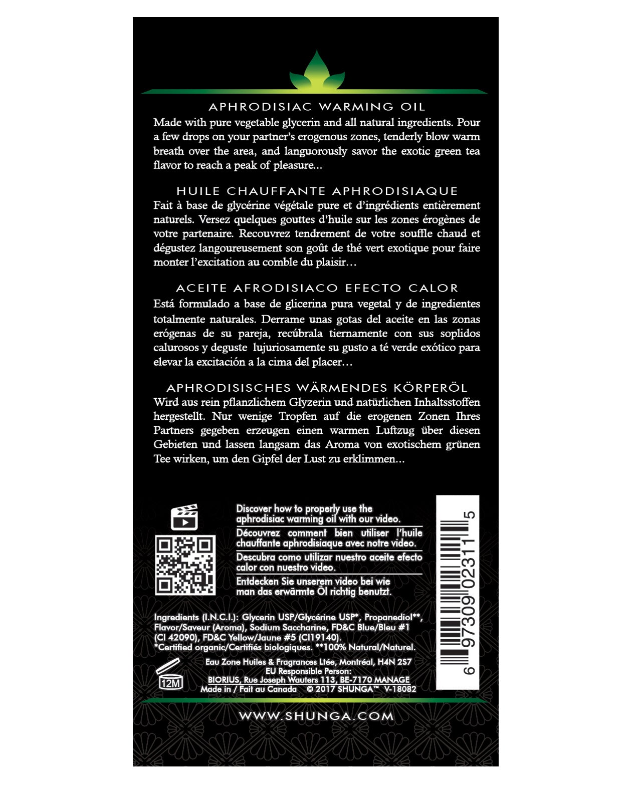 Experience the intimate thrill of connection with Shunga Organica Warming Oil in Green Tea. This organic edible oil transforms ordinary moments into extraordinary sensations, igniting passion and excitement in your most sensitive areas.