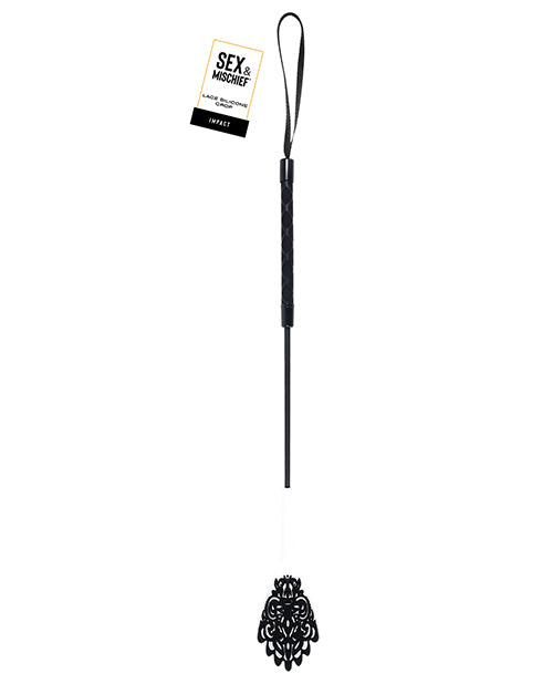 Leave a lasting mark of desire with the Lace Silicone Crop - a sultry and sophisticated take on a classic. Featuring a 100% silicone lace-patterned tip, this crop delivers a sharp, tantalizing sting while imprinting a delicate touch of elegance and allure. The intricate lace design adds a layer of sensual sophistication, making every strike as mesmerizing as it is thrilling. Whether used for a teasing caress or a more commanding impact, the Lace Silicone Crop ensures that every moment lingers with an air of dark romance and seductive power.