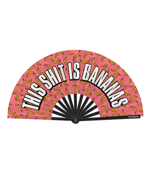 Cool yourself in style with this “This Shit Is Bananas” large-sized folding hand fan. It's literally covered in bananas! Colorful and fun with just the right attitude! Made of glossy bamboo ribs and high-quality satin material.