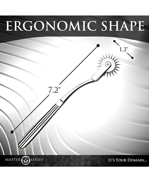 Elevate your intimate experiences with the Master Series Silver Sensation Wartenberg Wheel. This innovative tool ignites your partner's senses, creating a thrilling journey of pleasure that will leave them breathless.