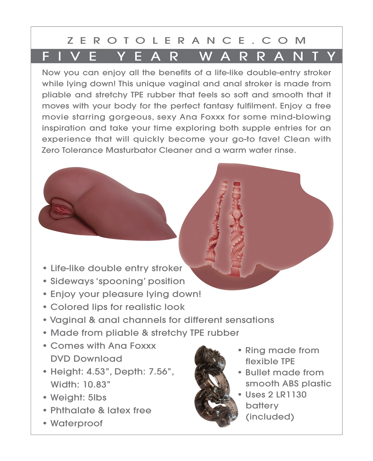 Experience the ultimate in pleasure with the Zero Tolerance Ana Foxxx Movie Download featuring a realistic side vagina and ass stroker. This innovative product provides an immersive, life-like double-entry experience that allows you to indulge in fantasy while comfortably lying down.