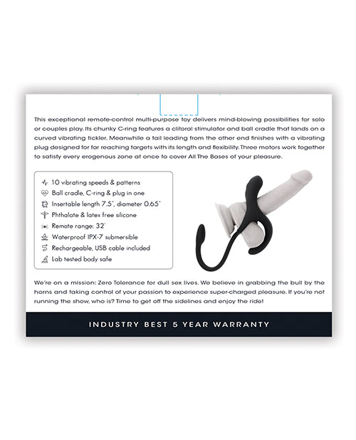 Experience unparalleled pleasure with the Zero Tolerance All The Bases - Black, designed to elevate your intimate moments to new heights. This exceptional remote-control multi-purpose toy caters to both solo adventurers and couples, ensuring that every play session is nothing short of mind-blowing.